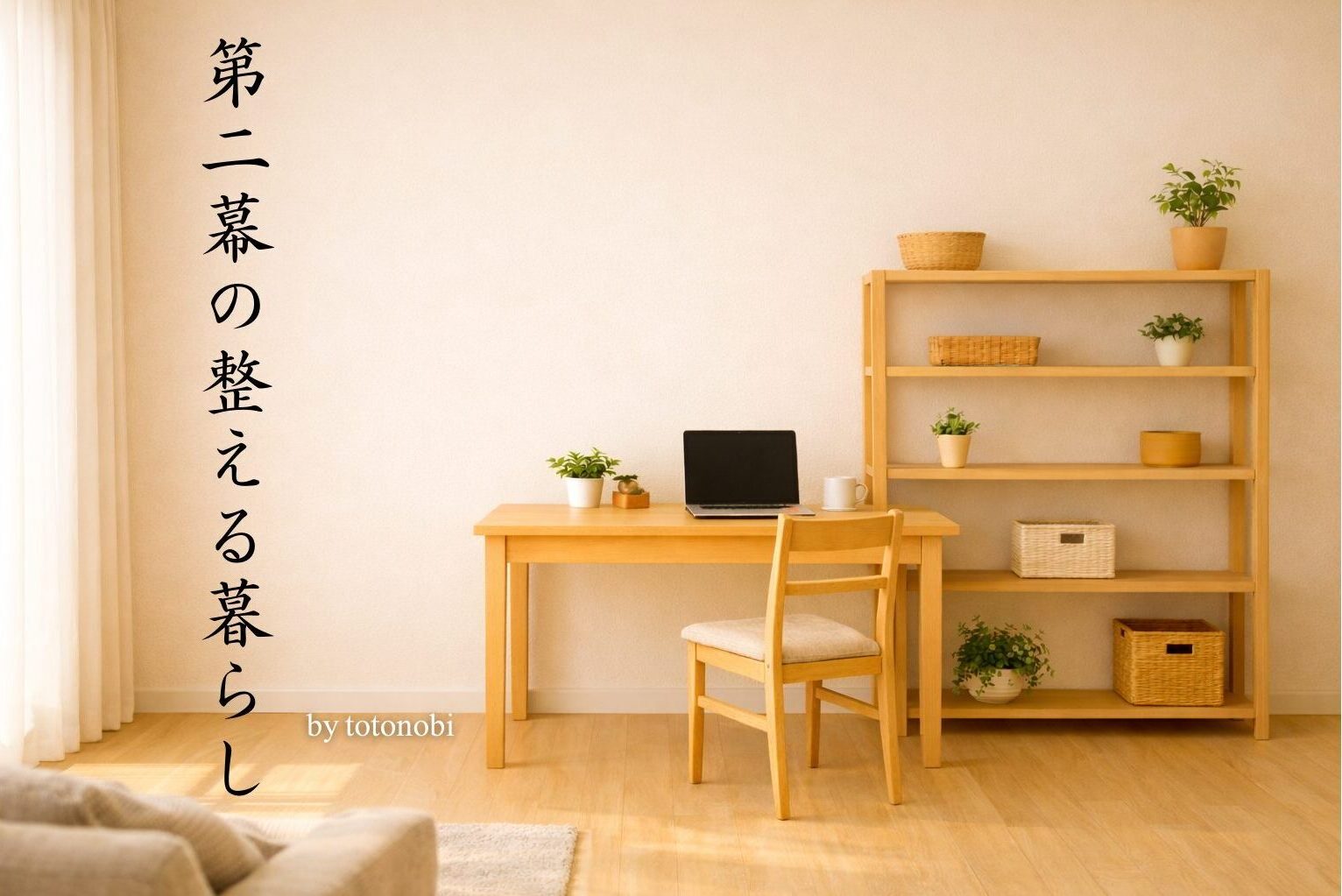 「第二幕の整える暮らし」は、人生の折り返し地点からの時間を大切に、10年後の明るい未来を思い描きながら「お金」「モノ」「時間」の使い方を提案するサイトです。今日ひとつ前に進むためのヒントをやさしくお届けしますので、あなたの生活に合う部分だけをそっとお持ち帰りください───